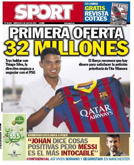 Tras hablar con el jugador Thiago Silva, el PSG (París Saint-Germain) negocia con el Barcelona para poder fichar al defensa; pues el Barcelona cuenta con el dinero necesario para poder satisfacer las prioridades del entrenador Culé,Tito Vilanova.